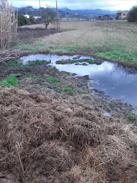 Anche presso un’altra stalla, i residui di allevamento erano accumulati sul suolo non impermeabilizzato, con evidenti fenomeni di dispersione e di ristagno del liquame.