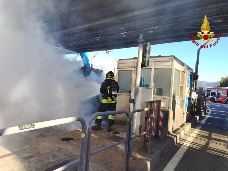 L'incendio al casello © Vigili del Fuoco