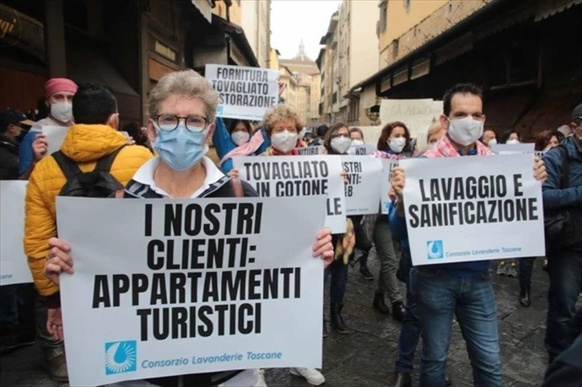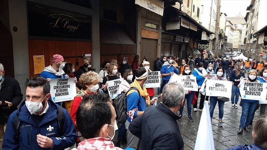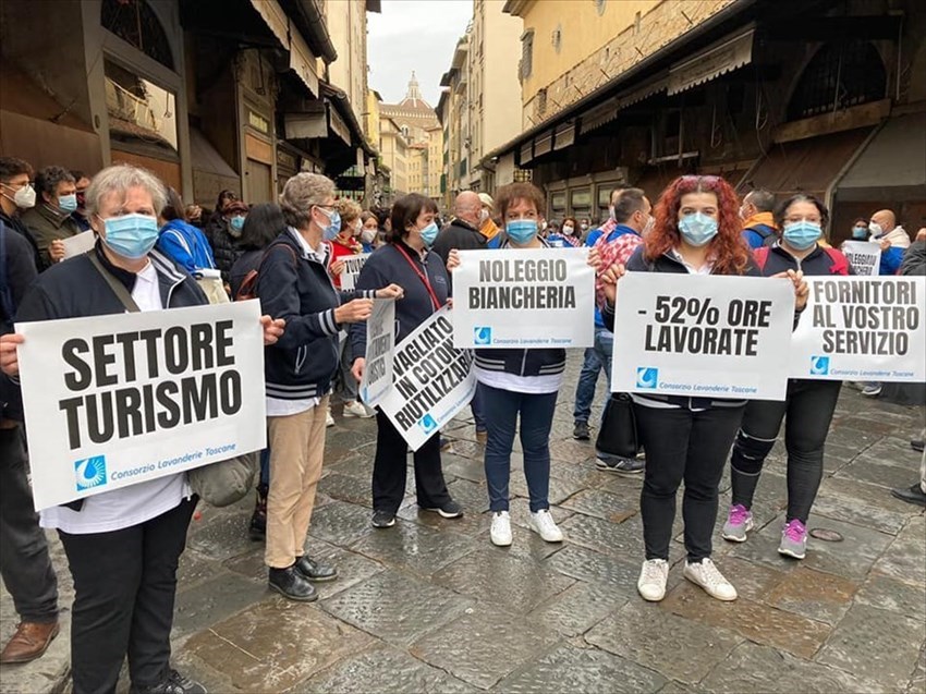La direzione Chi.Ma Florence era presente con una delegazione dei dipendenti insieme agli altri rappresentanti del Consorzio Toscano delle Lavanderie Industriali Turismo alla manifestazione “Ponti per il Futuro” che ha visto partecipi tutti gli attori del turismo (lavanderie industriali, ristoranti, alberghi, guide turistiche, ncc, taxi, fornitori etc). Siamo tutti lavoratori, in questa crisi non c’è differenza tra dirigenza o dipendenti, ci sono solo uomini e donne che vogliono far sentire la propria voce, per esercitare il loro diritto al lavoro e chiedere aiuti per le loro aziende che ancora una volta sono state tagliate fuori. Abbiamo partecipato erché chiediamo DIGNITÀ per il nostro settore, per tutti gli addetti soprattutto e per le nostre famiglie !! Le lavanderie industriali sono una risorsa per il Paese e soprattutto per il turismo. Perché noi esistiamo e siamo un valore per i nostri territori.