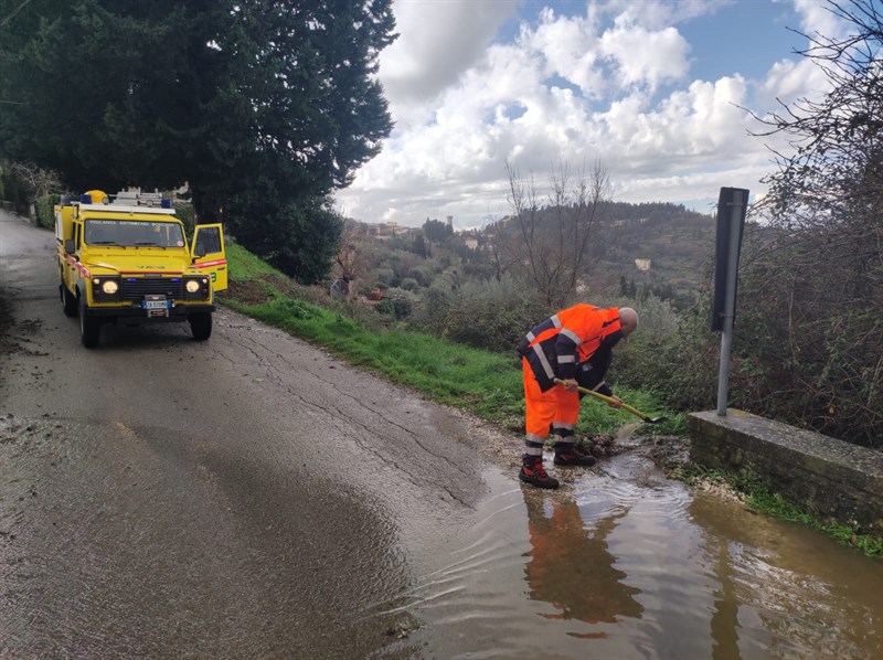I volontari sono stati impegnati nella rimozione di alberi caduti, nell’aspirazione dell’acqua dagli allagamenti e nella pulizia di strade e caditoie, oltre a svolgere un lavoro costante di monitoraggio del territorio per garantire la sicurezza dei cittadini. Gli interventi hanno interessato in modo particolare le località di Caldine e Pian del Mugnone nel comune di Fiesole, dove si è reso necessario rimuovere detriti e fango. A Vaglia, invece, le squadre sono intervenute a Fontebuona per contrastare gli allagamenti, a Iribbiano per la rimozione di una frana e a Montorsoli, in via delle Serre, per liberare le strade dall'acqua accumulata. In via di Basciano e via della Lupaia, a Pratolino, gli operatori hanno rimosso alcuni alberi caduti, mentre nel resto del territorio comunale sono stati effettuati controlli per verificare la sicurezza della viabilità.